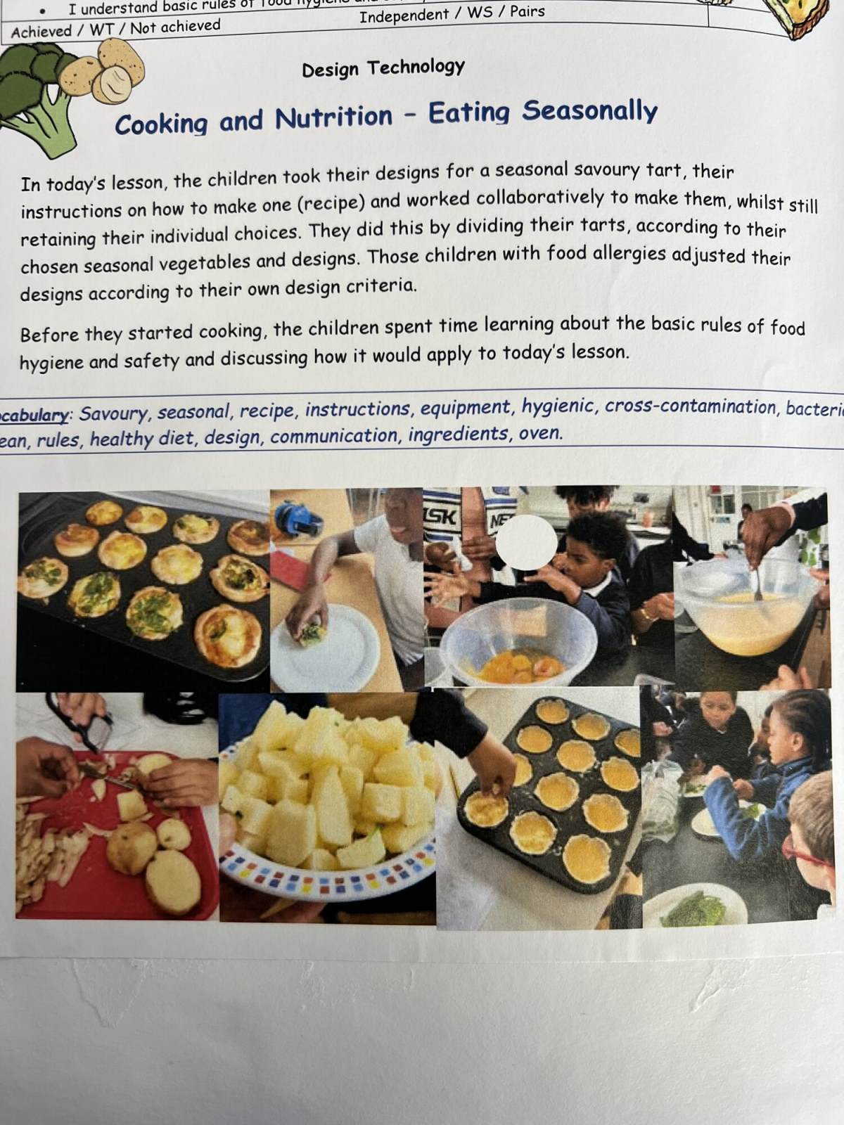 Pupils evaluate their work in more depth, identifying strengths and weaknesses and suggesting improvements. They further develop their technical knowledge of structures and mechanisms, and also apply the principles of a healthy and varied diet when preparing dishes and they learn about food sources.