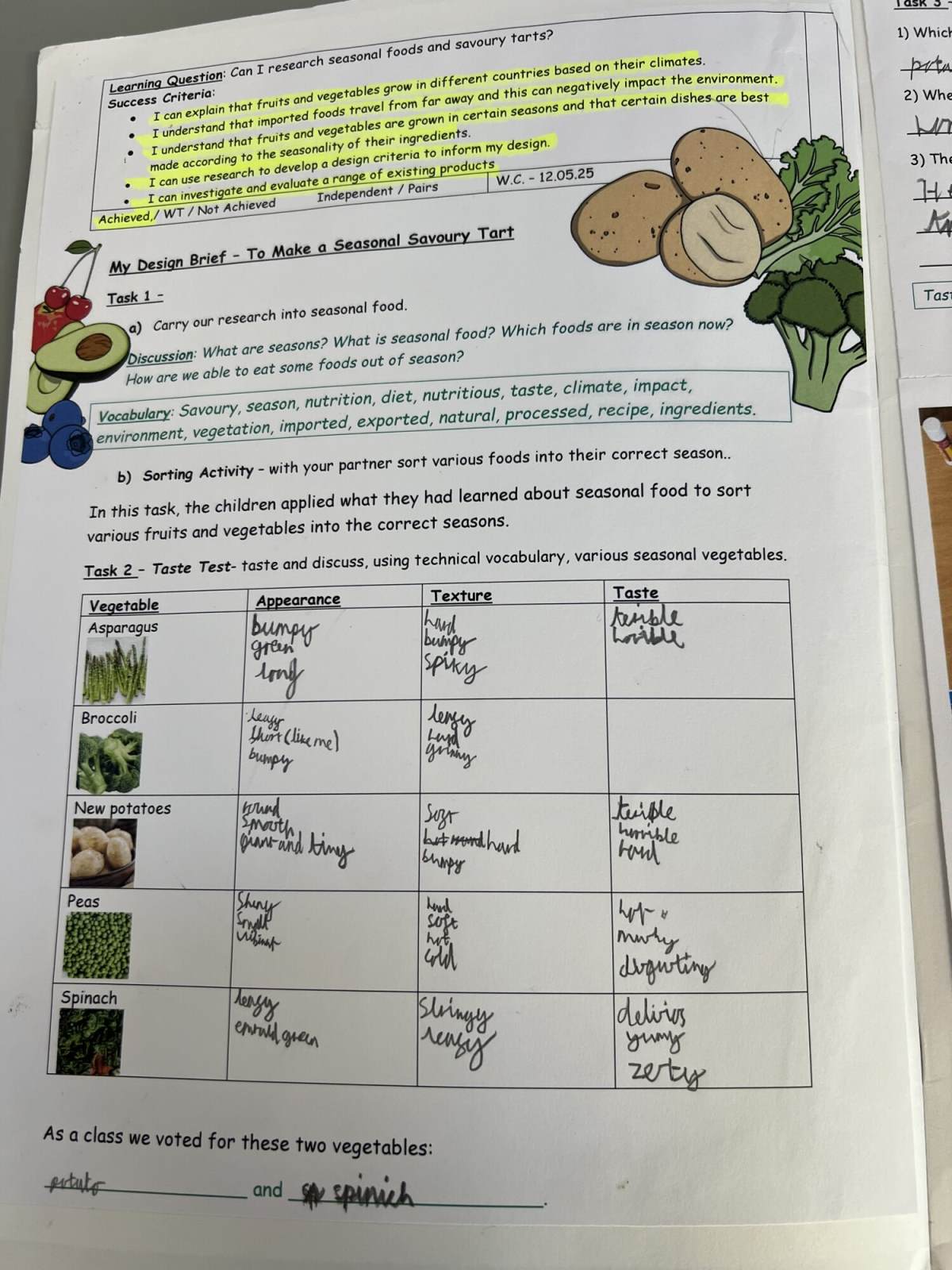 Evaluations become analytical, with pupils explaining the functions and features of their products, reflecting on their process and considering improvements in depth. They continue to apply their technical knowledge of structures, mechanisms, electrical systems and computing to bring designs to life. Cooking and nutrition emphasise seasonality, a healthy diet and preparing savoury dishes using a variety of techniques.