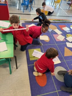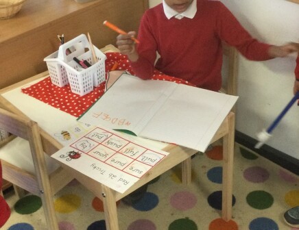 In Early Years, children begin systematic phonics teaching; they identify sounds in the environment, begin to stretch out words and identify the different sounds that make up words. Children recognise that sounds link to graphemes, and begin mark-making, building up to forming letters, writing their own name, and in reception, joining these letter strings to make words, then constructing sentences.