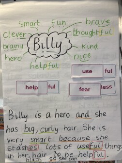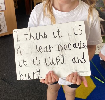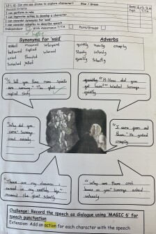In year three, children begin to develop their writing across a wider range of text types, writing for real purposes and audiences. They write in more detail about settings and characters, and develop their plot in narratives. They begin to use speech within narrative, using inverted commas based on modelled writing. Children introduce adverbs to their writing and begin to use prepositions.
