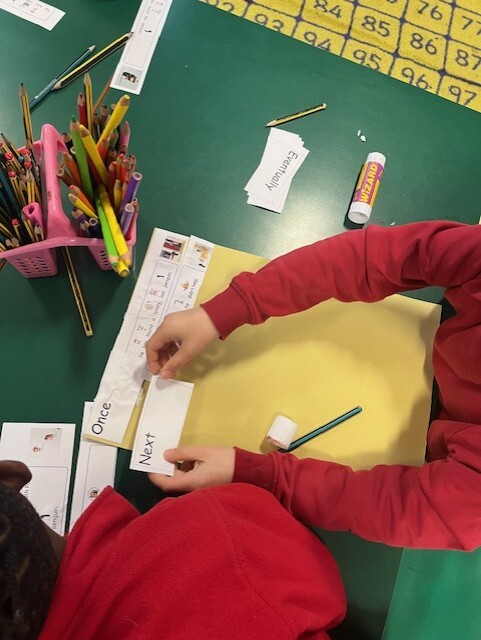 In year one, children begin to construct short narratives, focussing on a familiar text. To prepare to write, children will chorally retell familiar stories with their class, and orally rehearse their own ideas for writing, using story maps and pictorial representations to help them sequences the main events. They continue to focus on correct letter formation, using finger spaces and they begin to extend their punctuation use to include question marks and exclamation marks, as well as full stops and capital letters. Children continue to use phonics to support spelling.