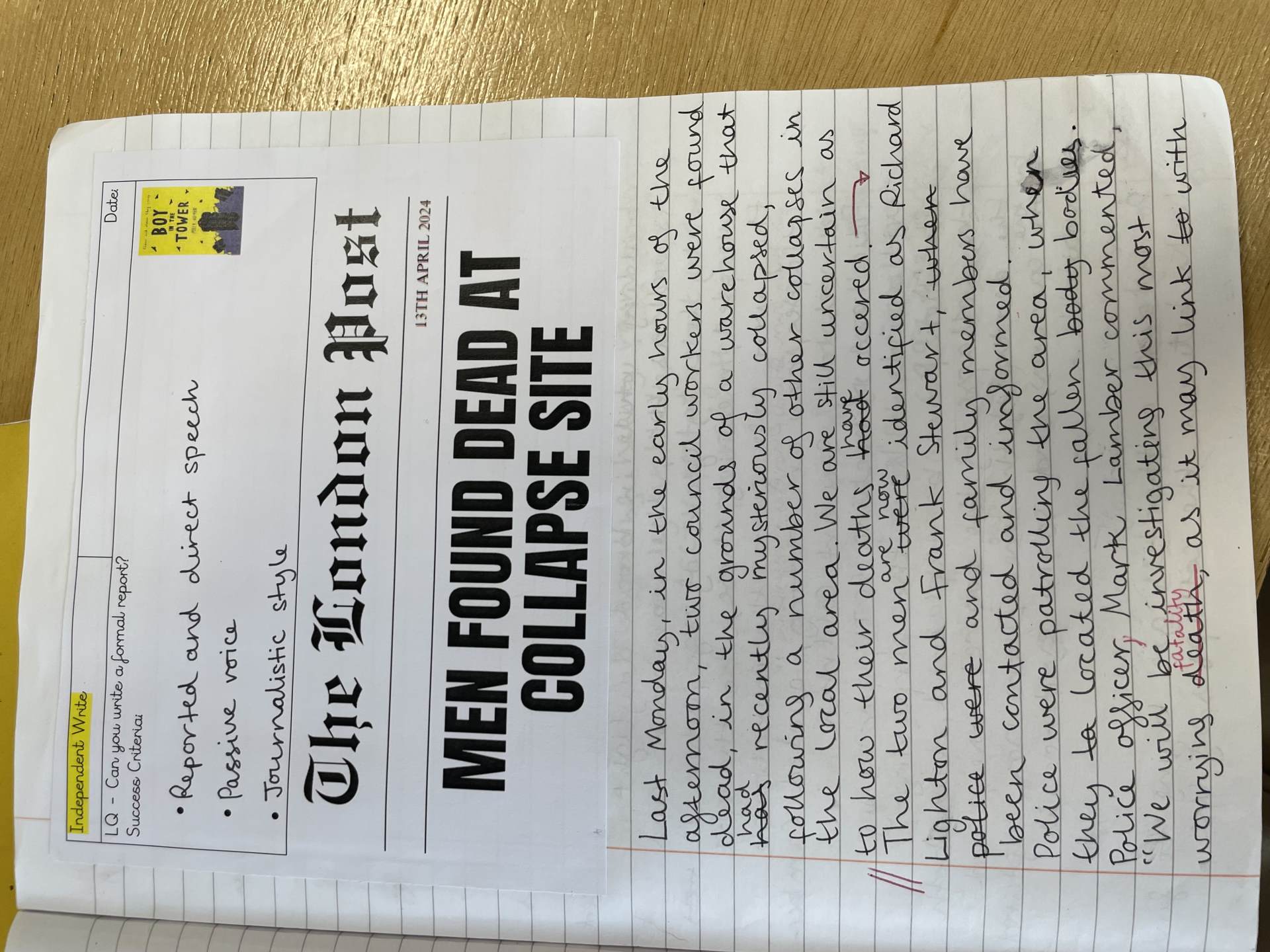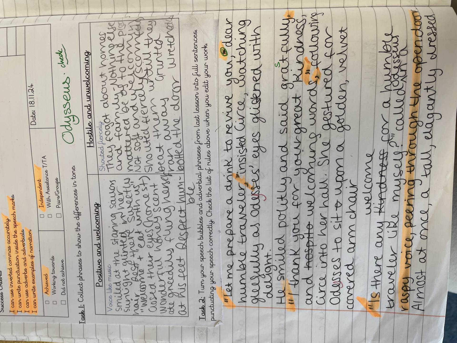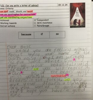 In year four, children have an increasing awareness of the correct language and form required for different fiction and non-fiction text types. They can create their own characters, setting and plot for narratives, and employ the conventions of speech with greater accuracy. Writing for a range of purposes, children demonstrate a greater awareness of grammar features, such as: prepositions, fronted adverbials and conjunctions. They maintain the use of joined handwriting throughout independent writing, and continue to learn rules for spelling words with a variety of prefixes and suffixes.