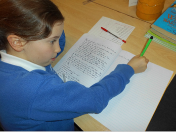 Opportunities are given for pupils to develop a secure understanding of the writing process, which include planning, revisiting and editing their work. Pupils are provided with opportunities to build on a piece of writing over a number of days. This helps build writing stamina and a chance for pupils to re-read, reflex and edit their writing to make improvements.