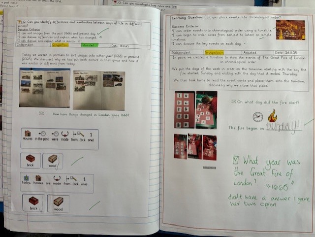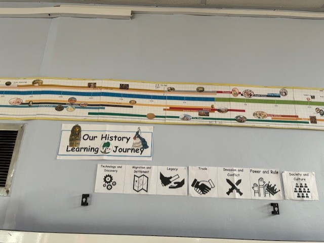 We support understanding of chronology through timelines which are displayed around the school. This supports children to make connections with previous history learning.