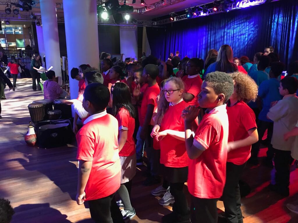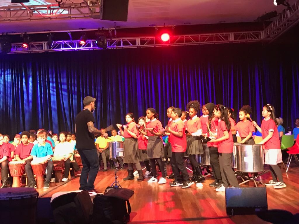 In the Spring term, our UKS2 pupils join children from throughout Southwark to perform in a cross-school percussion festival at the Southbank. The children apply their learning from weekly music lessons to showcase the skills they have developed to a huge audience of family and friends, various school communities and the wider public.