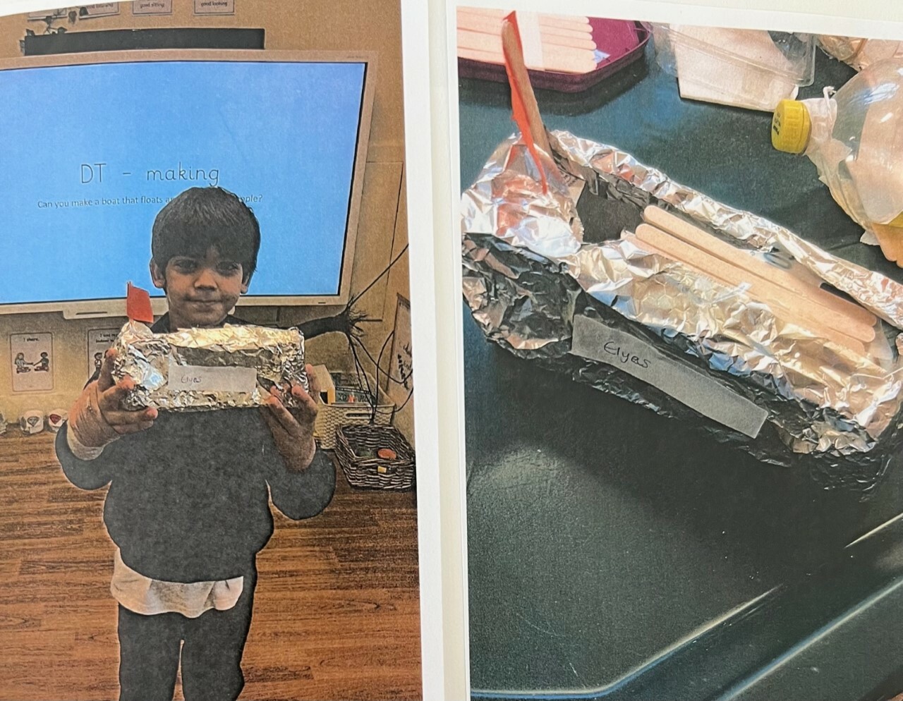 Pupils are encouraged to evaluate their work by discussing what they like and dislike and suggesting improvements. They also start to build an understanding of structures, exploring ways to make them stronger and more stable, and experiment with simple mechanisms such as levers and sliders.