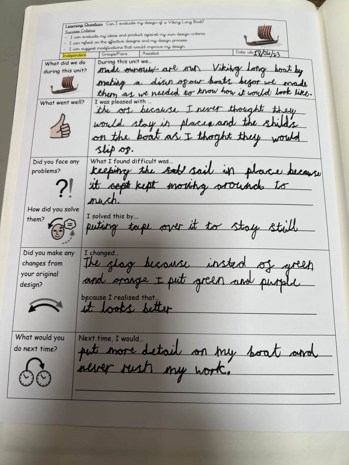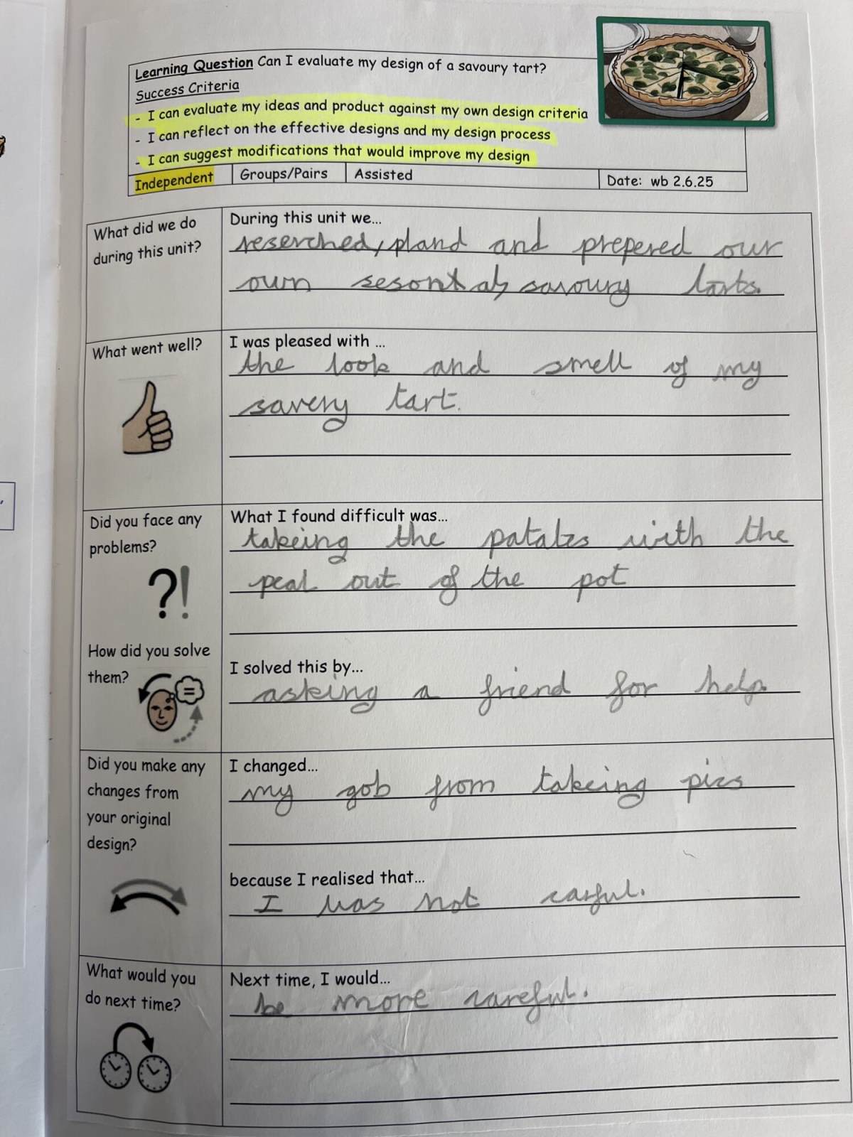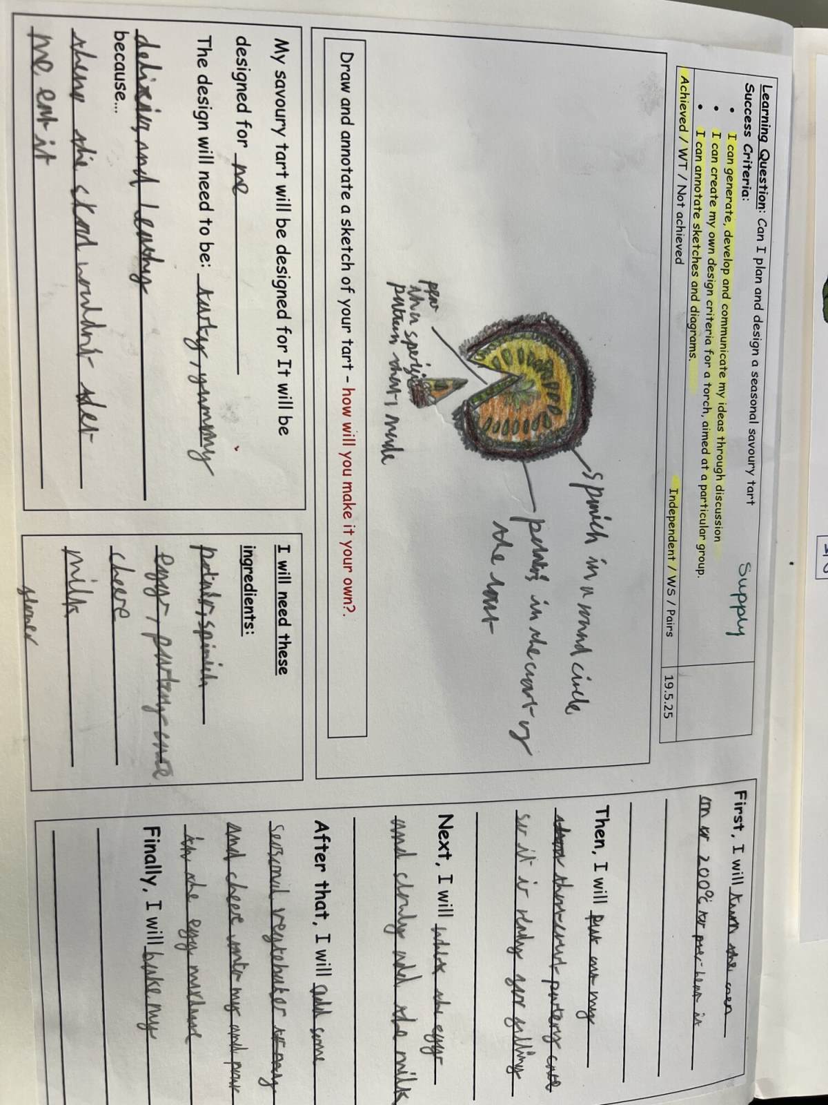 Pupils evaluate their work in more depth, identifying strengths and weaknesses and suggesting improvements. They further develop their technical knowledge of structures and mechanisms, and also apply the principles of a healthy and varied diet when preparing dishes and they learn about food sources.