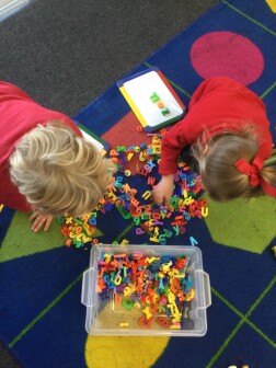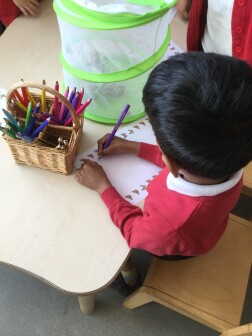 In Early Years, children begin systematic phonics teaching; they identify sounds in the environment, begin to stretch out words and identify the different sounds that make up words. Children recognise that sounds link to graphemes, and begin mark-making, building up to forming letters, writing their own name, and in reception, joining these letter strings to make words, then constructing sentences.