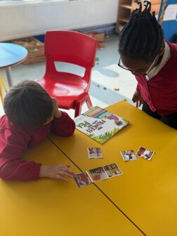Reading and sharing stories plays a fundamental role in supporting children's language development. Children are encouraged to join in with familiar stories, and orally retelling stories with each other and as a class.