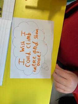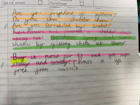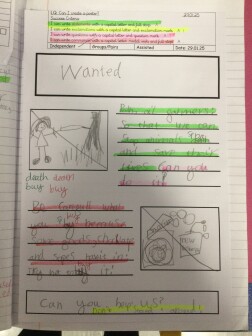 In year three, children begin to develop their writing across a wider range of text types, writing for real purposes and audiences. They write in more detail about settings and characters, and develop their plot in narratives. They begin to use speech within narrative, using inverted commas based on modelled writing. Children introduce adverbs to their writing and begin to use prepositions.