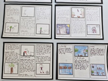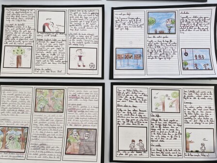In year four, children have an increasing awareness of the correct language and form required for different fiction and non-fiction text types. They can create their own characters, setting and plot for narratives, and employ the conventions of speech with greater accuracy. Writing for a range of purposes, children demonstrate a greater awareness of grammar features, such as: prepositions, fronted adverbials and conjunctions. They maintain the use of joined handwriting throughout independent writing, and continue to learn rules for spelling words with a variety of prefixes and suffixes.