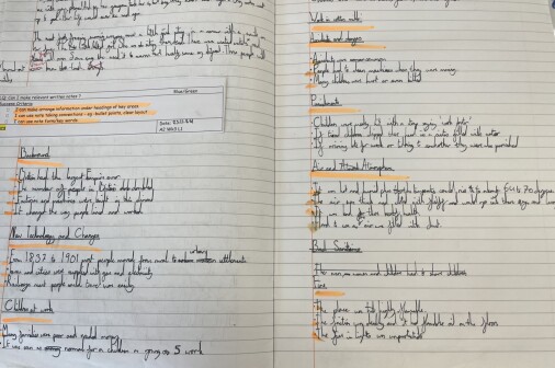 In year five, children continue to write for a range of purposes and audiences, showing a greater awareness of the reader. Children learn to make choices about grammar and vocabulary to use within their writing, and to select appropriate layout features for the text type. Children show greater confidence in selecting adverbials, prepositions and conjunctions to build cohesion within and between paragraphs. In narratives, children consider the balance between dialogue and action, and how dialogue can be used to move a story along.