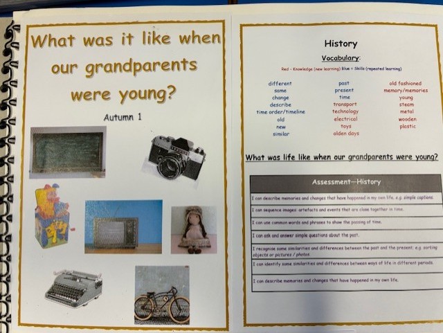 The Early Years Foundation Stage follows the ‘Development Matters in the EYFS’ guidance, which states that all children should have an ‘Understanding of the World; people and communities, the world and technology’ by the time that they leave reception. Topics have been selected to include historical themes and provide a foundation for later historical learning. Children are provided with opportunities to explore artefacts from the past, read books and learn stories from history and interact with ‘long standing’ members of the community.